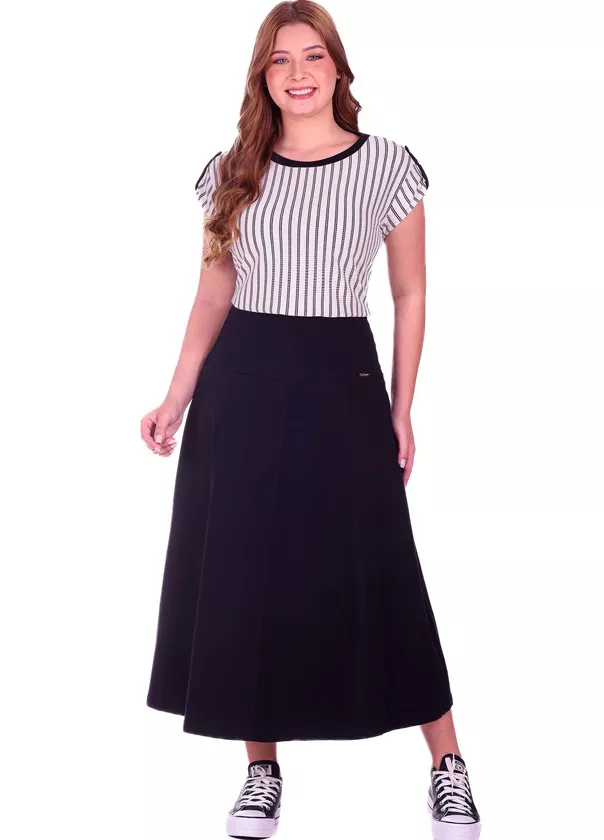 A saia Heloisa foi confeccionada em jeans color de algodão com elastano. Esse modelo apresenta pala larga, fechamento traseiro por zíper, detalhe em recortes e shape levemente godê. Essa saia Heloisa possui muito conforto e uma ótima vestibilidade, sendo ideal para compor looks casuais.