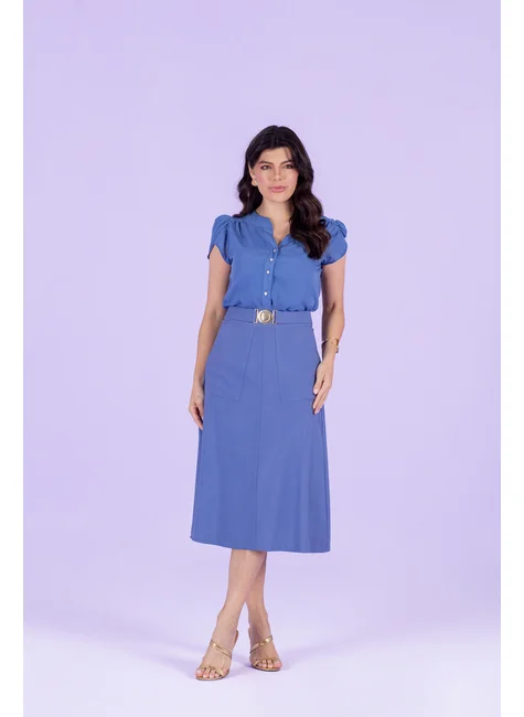 A Saia Midi Evasê com Fivela Arredondada Hadaza traduz feminilidade e sofisticação em cada detalhe. Com modelagem evasê e comprimento midi, ela valoriza a silhueta com leveza e movimento. A faixa embutida na cintura com fivela arredondada traz um toque refinado e ajusta a peça com elegância. O bolso funcional sobreposto acrescenta praticidade ao look, enquanto o zíper de nylon nas costas garante conforto ao vestir. O acabamento é valorizado pela placa manuscrita Hadaza em dourado, que sela a exclusividade da peça.