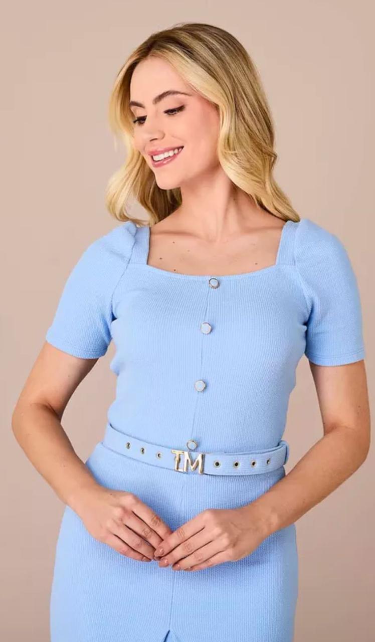 Descubra a sofisticação e o charme do Vestido Diana da marca Tata Martello. Com um deslumbrante tom de azul, esse vestido é a escolha perfeita para ocasiões especiais ou para o dia a dia, garantindo que você esteja sempre na moda. A peça conta com um corte midi que valoriza a silhueta, além de um detalhe de botões na parte frontal que adiciona um toque clássico e elegante.
