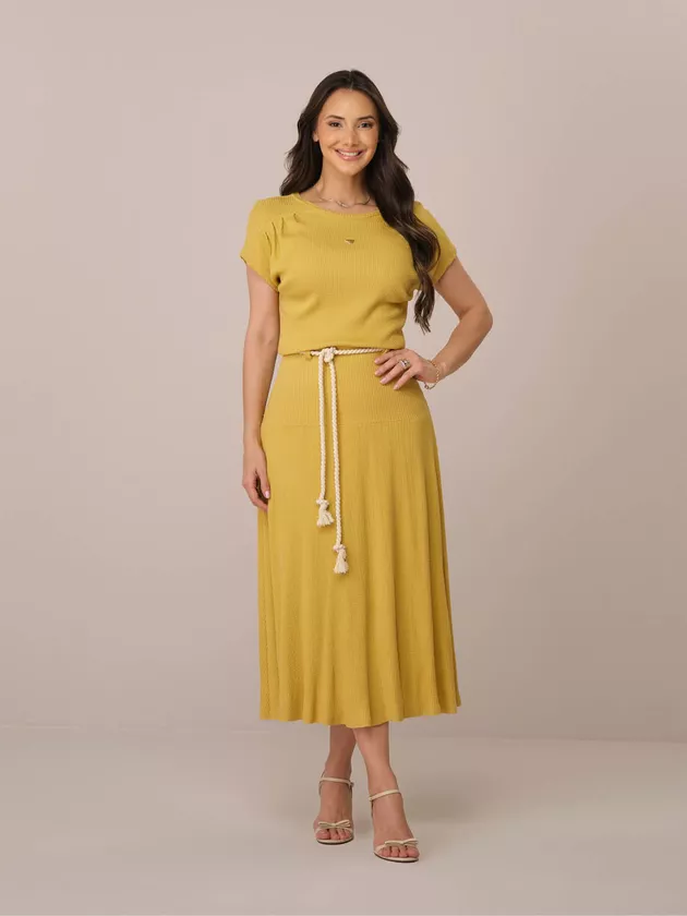 Vestido Manuela – Tata Martello O Vestido Manuela expressa elegância contemporânea ao unir praticidade e sofisticação em uma proposta moderna e versátil. Confeccionado em malha suave e confortável, possui toque macio, caimento fluido e excelente adaptação ao corpo, proporcionando conforto e leveza ao vestir. Seu design midi valoriza a silhueta com naturalidade, sendo ideal para composições elegantes no dia a dia. Como detalhe de destaque, a plaquinha triangular decorativa aplicada no busto acrescenta um charme metálico delicado e sofisticado ao visual. As mangas curtas com leve volume conferem feminilidade na medida certa, aliando conforto e presença. A cintura conta com passantes funcionais, que estruturam a peça e permitem diferentes possibilidades de styling. Acompanha cordão São Francisco, com acabamento artesanal, que destaca a cintura de forma elegante e diferenciada. O forro interno garante conforto e segurança no uso. Assinado pela Tata Martello, marca referência na moda feminina.
